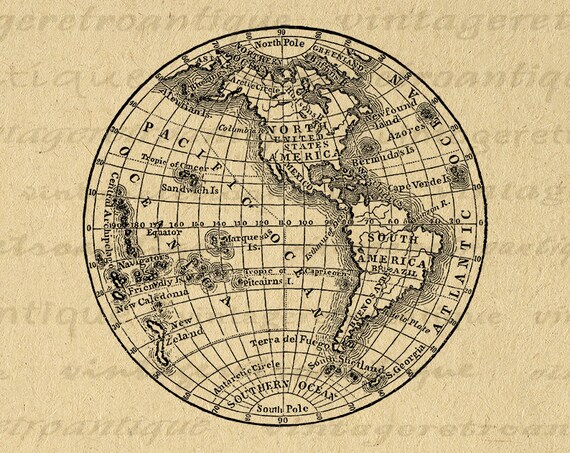 Vintage Map Digital Download Antique Globe Printable Illustration