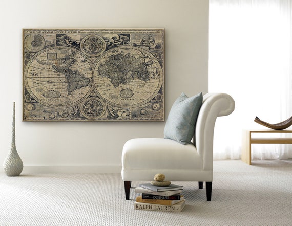 Vintage Old World Map Historic Map 1626 Antique World Map
