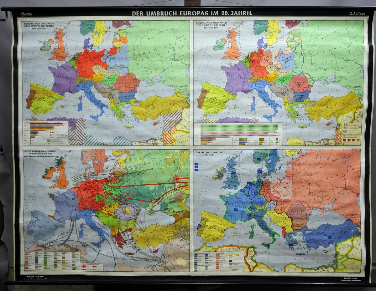 Vintage Pull Down Map of Europe History Upeheavals of the 20th
