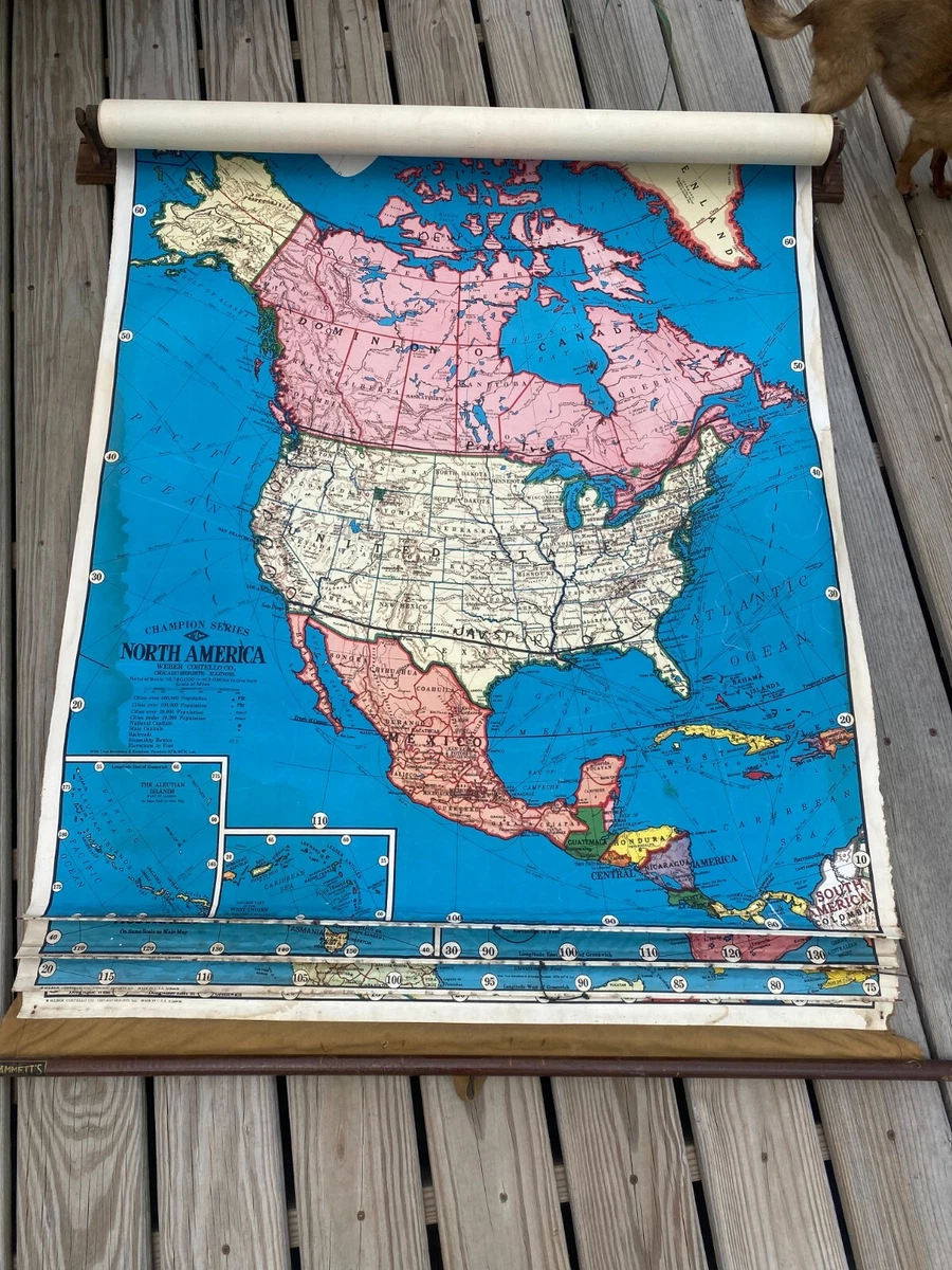 1960 Vintage Pull Down Cartography Chalkboard Map of North America