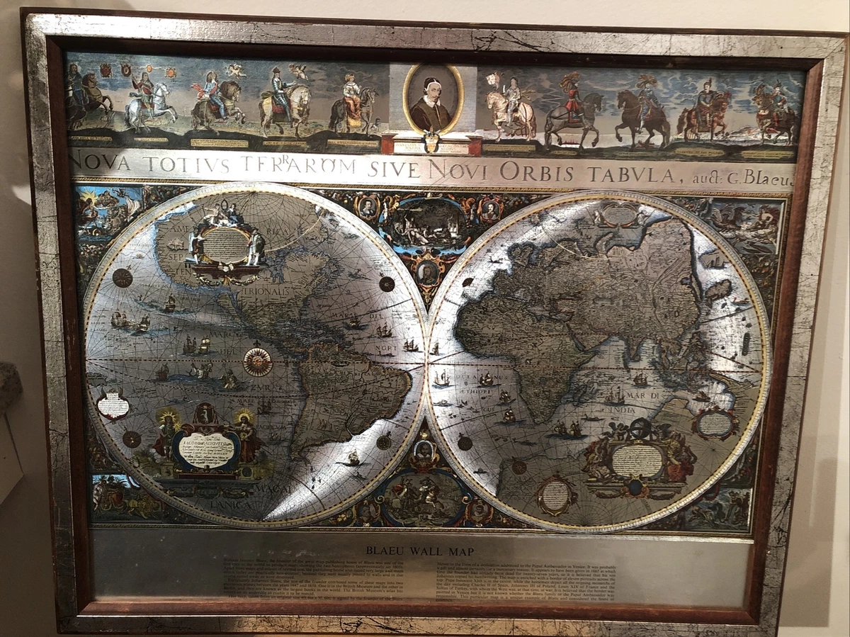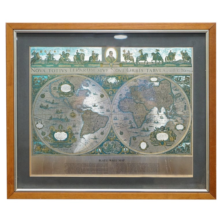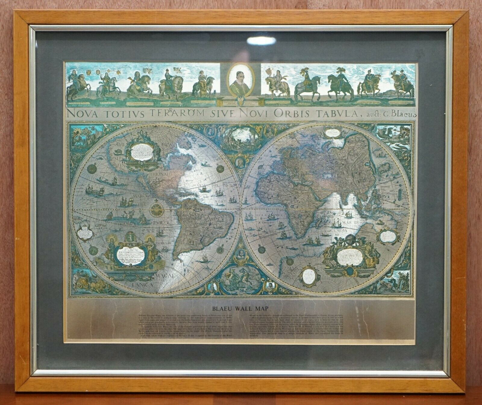 Best Blaeu Wall Map Vintaged Framed Silver/gold Foil ~ Old & New