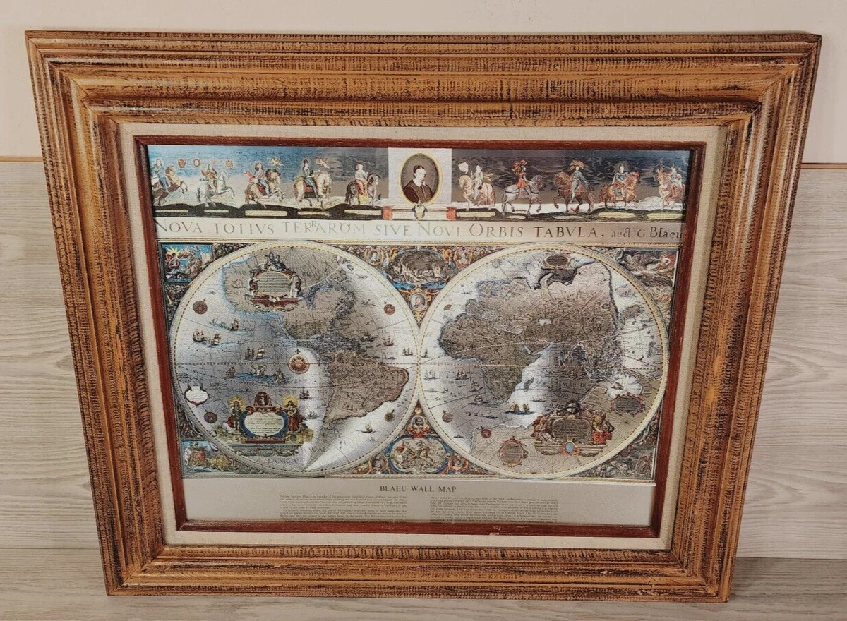 Vintage Framed Colored Foil Blaeu Wall Map of the Old and New