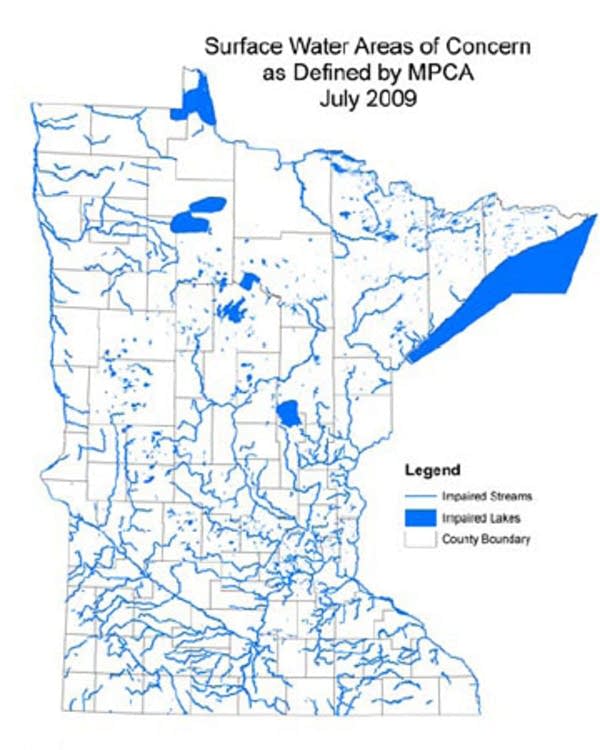 Mpca Impaired Waters Map Minnesota updates list of impaired waters for 2022 | Friends of : The map key shows five discs of different colours, which represent the five levels of the water hardness scale – from water hardness 1 (soft water) to water hardness 5 (hard water). The key also . Watershed Assessment Reports and List of Impaired Waters The Clean Water Act also requires states to regularly monitor and assess the quality of their waters through a variety of monitoring (water .