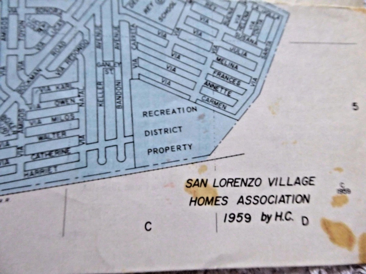 VINTAGE PAPER SAN LORENZO VILLAGE MAP DEL REY PARK CLUBHOUSE 1959